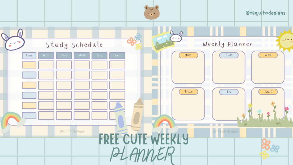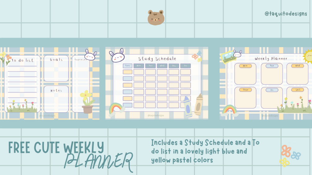 A lovely, printable, digital, light blue and yellow Weekly planner with a Study Schedule and a To Do list with space for notes. Perfect to start your planning journey with an adorable touch!